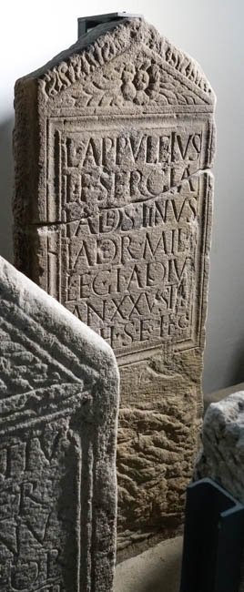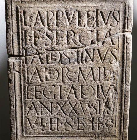 - L(ucius) Appuleius / L(uci) f(ilius) Sergia / Iadestinus / Iader mil(es) / leg(ionis) I Adiut(ricis) / an(norum) XXV stip(endiorum) / VI h(ic) s(itus) e(st) h(eres) f(aciendum) c(uravit)