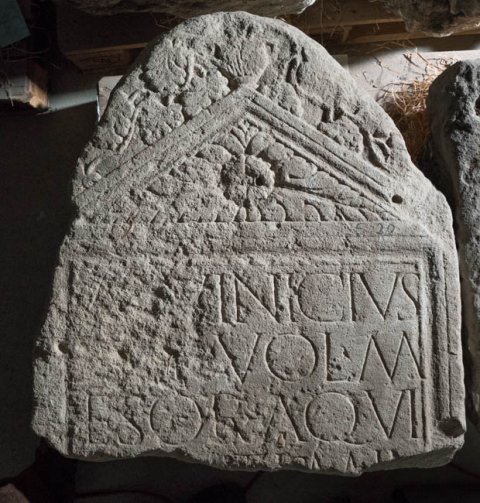 - M(arcus) Vinicius / M(arci) f(ilius) Vol(tinia) M/esor Aqui/[s Sex]tis mil(es) [leg(ionis) ---