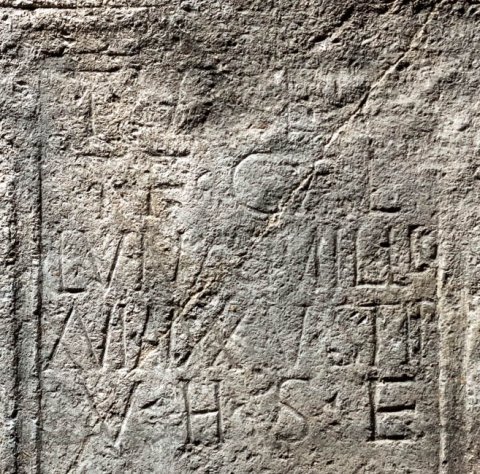- T(itus) Valer[ius] / T(iti) f(ilius) Gal(eria) / Luna mil(es) leg(ionis) / XVI an(norum) XXV stip(endiorum) / V h(ic) s(itus) e(st)