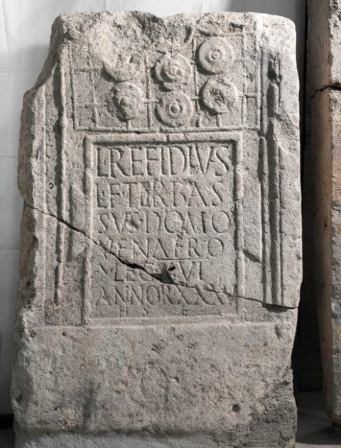 - L(ucius) Refidius / L(uci) f(ilius) Ter(entina) Bas/sus domo / Venafro / |(centurio) leg(ionis) XVI / annor(um) XXXV / h(ic) s(itus) e(st)