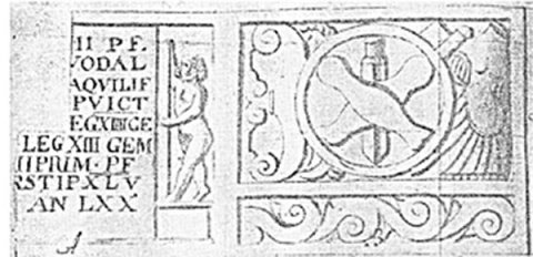 - [Dis] Man(ibus) // [---] II P(ubli) f(ilius) / [--- Aeq]uo Dal/[matiae] aquilif(er) / [leg(ionis) XXX Ul]p(iae) vict(ricis) / [promot(us) |(centurio) l]eg(ionis) XIIII ge/[m(inae) v(ictricis) |(centurio)] leg(ionis) XIII gem(inae) / [|(centurio) leg(ionis) XX]II Prim(igeniae) p(iae) f(idelis) / [qui me]r(uit) stip(endia) XLV / [vixit] an(nos) LXX