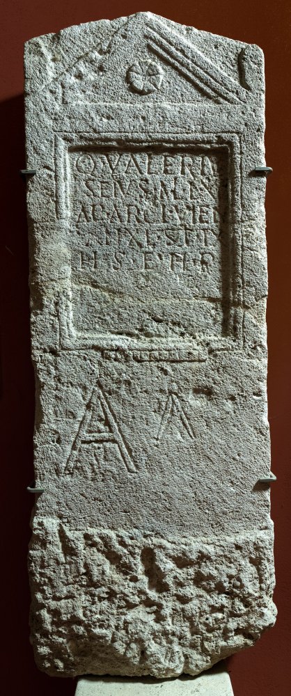 - Q(uintus) Valerius / Seius mil(es) l(egionis) XV / Ap(ollinaris) arc(h)i(tectus) Vien(na) / an(norum) XL sti(pendiorum) IX / h(ic) s(itus) e(st) h(eres) p(osuit)