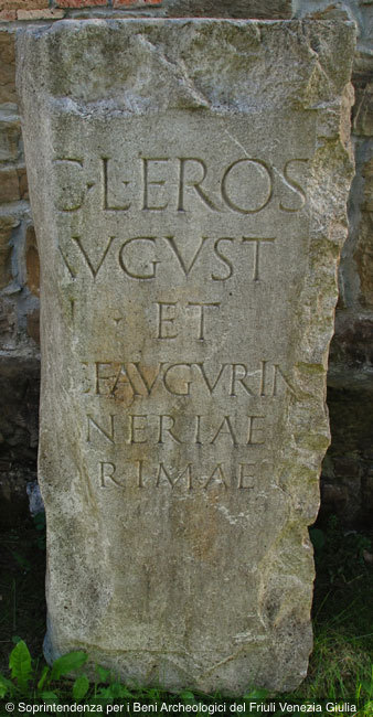 - [---] C(ai) l(ibertus) Eros / [---] August(alis) / [---] sib]i et / [---] C(ai) f(ilio) Augurin[o] / [et ---]neriae / [---]rimae