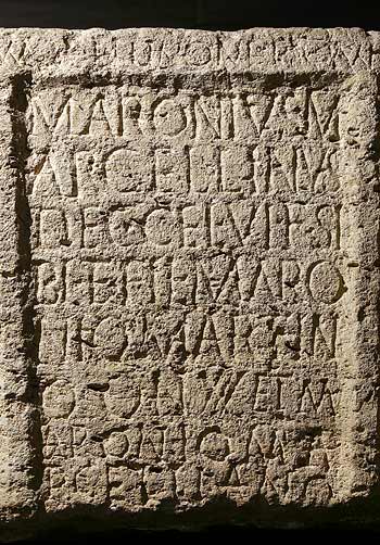 Maronius M/arcellinus / dec(urio) Cel(eiae) vi(vus) f(ecit) si/bi et fil(io) Maro/nio Martin/o o(bito) an(norum) XXX et M/aronio Ma/rcelliano