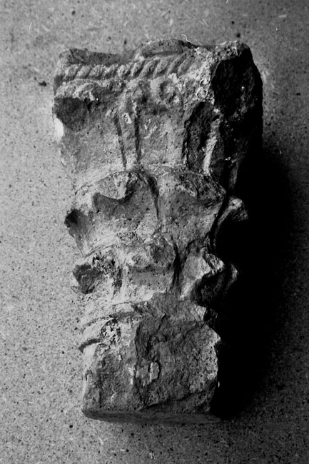 - Kapitell mit Blattkränzen und dünnen Volutenstängeln, oben tordiertes Band
