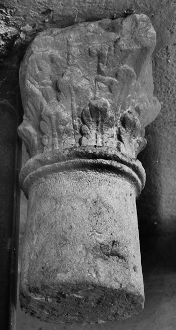- Kapitell mit Akanthusblattkränzen, glatter Säulenschaft mit zwei Wülsten oben, unten glatt abgeschnitten: Bekrönung eines Grabmals ?