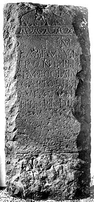 - D(is) M(anibus) / Oclati(a)e Masvoni(a)e / matron(a)e pient[i]/ssim(a)e Oclatiu[s] / [A]ncario(?) liber/[tu]s vivus et sibi / [fec]it i<m=N>pendio / suo