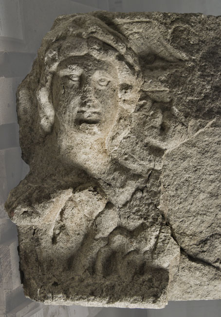 16667 Reliefblock mit Büste im Blätterkelch