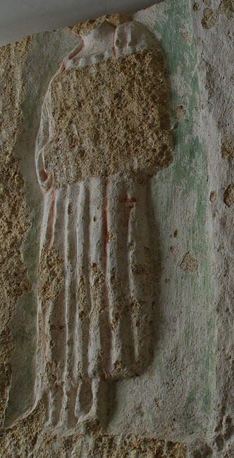 - oben abgeschnitten, Außenseite völlig, Innenseite tlw.abgearbeitet. Reste der Bemalung erhalten.