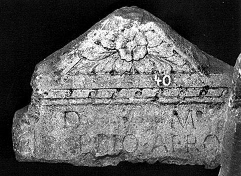 - 1883 am Fuß des Albansberges bei Verlegung der Bahngeleise (sekundär als Sarkophagdeckel)