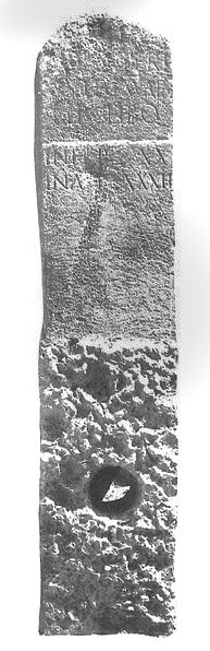 - Q(uintus) Laberi/us leg(ionis) XV Apo(llinaris) / lib(ertis) lib(ertabus)q(ue) / in f(ronte) p(edes) XX / in a(gro) p(edes) XXXII