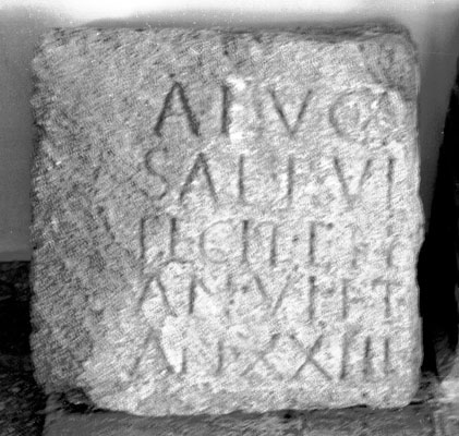 Aiiuca(!) [C]ombris/sae f(ilia) vi[v]a sibi / fecit et I[---]una filiae / an(norum) VI et [s]ervi Bitua / an(norum) XXIII [---]asarius / [---]VN[---