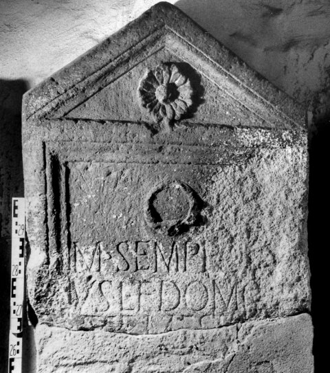 - M(arcus) Semproni/us L(uci) f(ilius) domo / [Termestinus / anno(rum) XX[---] / dec(urio) eques alae / Sebosianae / h(ic) s(itus) e(st)]