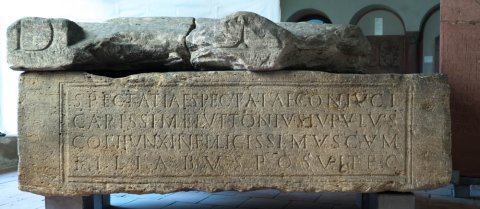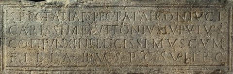 - D(is) M(anibus) / Spectatiae Spectatae coniugi / carissim(a)e Luttonius Lupulus / coniunx infelicissimus cum / filiabus posuit f(aciendum) c(uravit)