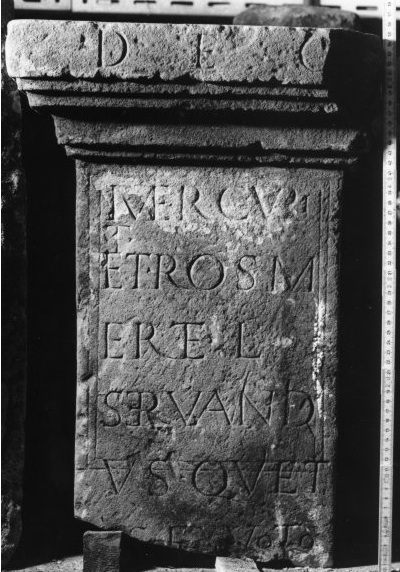 - Deo / Mercuri(o) / et Rosm/ert(a)e L(ucius) / Servandi/us Quiet/us ex voto / in su(o) p(osuit)