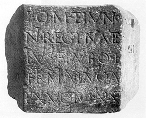 - I(ovi) O(ptimo) M(aximo) et Iuno/ni Reg(inae) Intame/lus Eburo et / Firmia Lucia / ex voto in s(uo) / p(osuerunt)