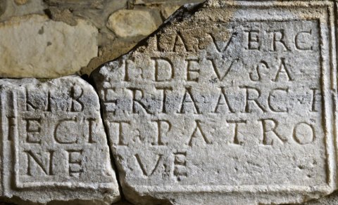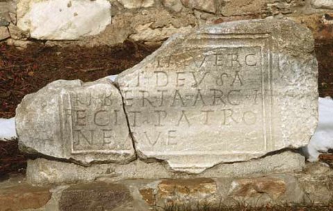 - [ ---]ia Verc/[--- ] et Deusa / liberta arc(am) f/ecit patro/n(a)e su(a)e
