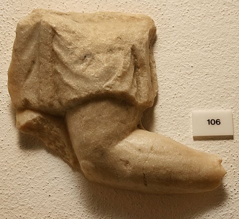 - abgewinkelter rechter Arm eines Mannes (Diener) in Tunica