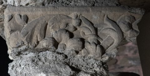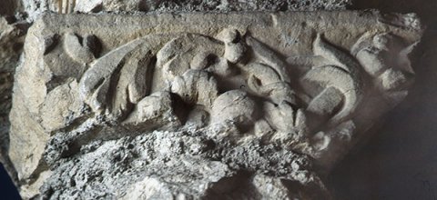 - an der Nordseite der Kirche, über einem röm. Kapitell