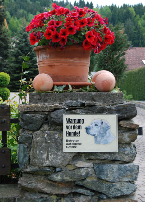 - am Gartenzaunpfeiler gegenüber der Südostecke der Kirche