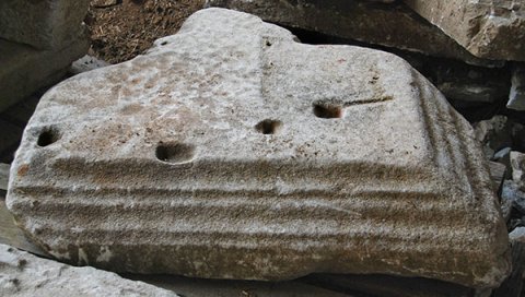 - an 2 Seiten abgebr., verwittert, in der Oberseite Dübellöcher