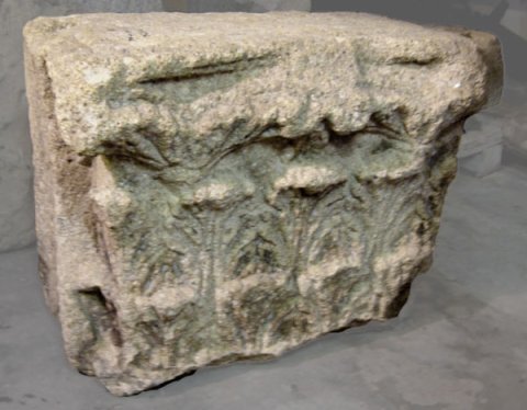 - Kapitelle von zwei Eckpilastern mit Akanthusblattkränzen