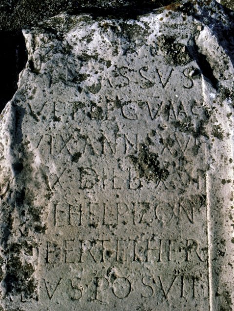 - D(is) M(anibus) / [Ae]l(ius) [B]assus / vet(eranus) leg(ionis) V Mac(edonicae) / vix(it) ann(is) LXVI / [m(ensibus)] X dieb(us) XVI / [Ae]l(ius) Helpizon / [l]ibert(us) et her(es) / eius posuit