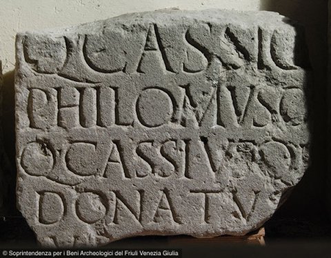 - Q(uinto) Cassio / Philomuso / Q(uintus) Cassius Q(uinti) f(ilius) / Donatus / Vib[---] [---?