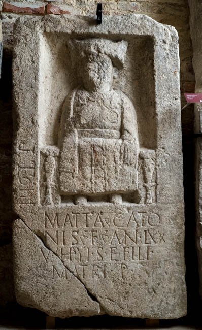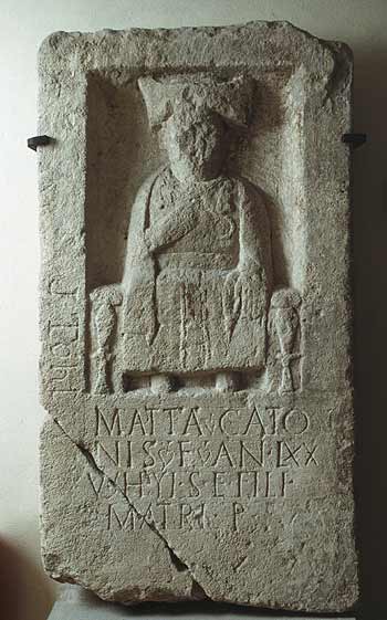 - Matta Cato/nis f(ilia) an(norum) LXX/V h(ic) {YI} s(ita) e(st) fili(i) / matri p(osuerunt)