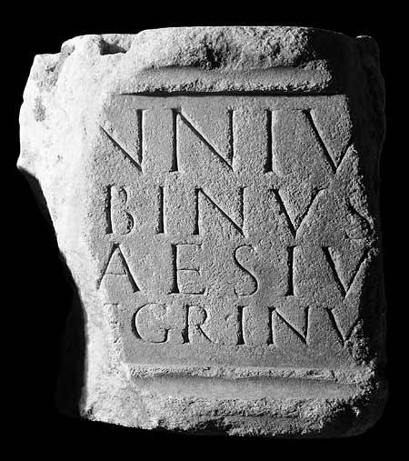- [A]nniu[s? ---] / [--- Sa]binus [---] / [--- Bl]aesiu[s ---] / [--- Per]egrinu[s ---