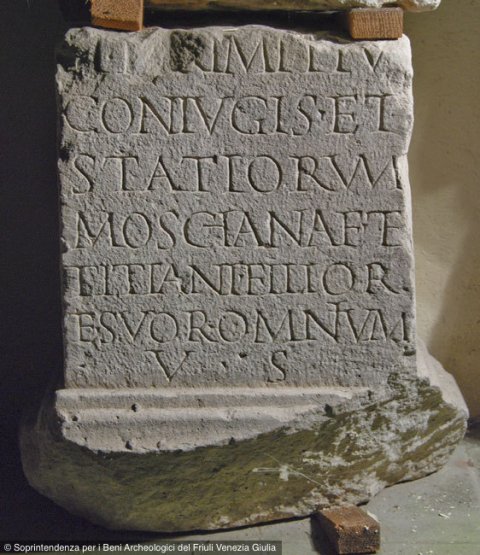 - ---] / [pro salute L(uci) Stati] / L(uci) l(iberti) [P]rimitiv(i) / coniugis et / Statiorum / Moschanae et Titiani filior(um) / et suor(um) omnium / v(otum) s(olvit)