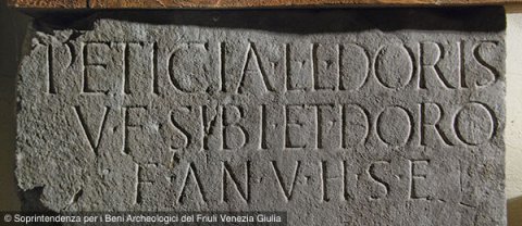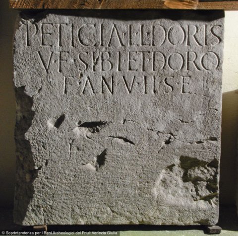 - Peticia L(uci) l(iberta) Doris / v(iva) f(ecit) sibi et Doro / f(ilio) an(norum) V h(ic) s(itus) e(st)