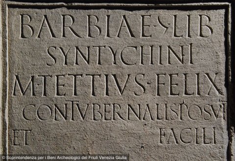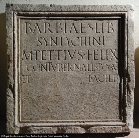 - Barbiae |(mulieris) lib(ertae) / Syntychini / M(arcus) Tettius Felix / contubernalis posuit / et Facili