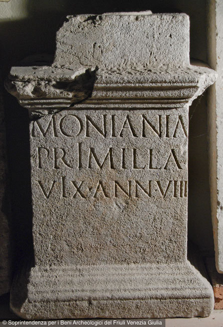 - Moniania / Primilla / vix(it) ann(os) VIII