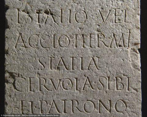 - L(ucio) Statio Vel(ina) / Accio Hermeti / Statia / Cervola sibi / et patrono