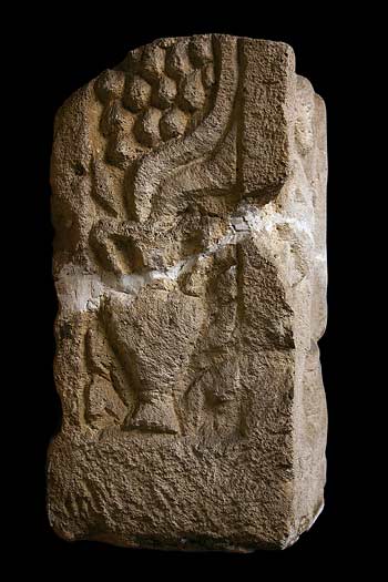 Auf der linken Nebenseite Gefäß, aus dem Weinstock wächst. - Kommentar