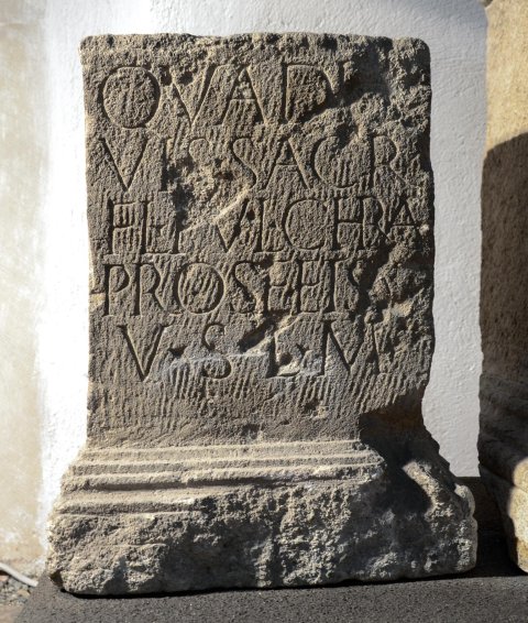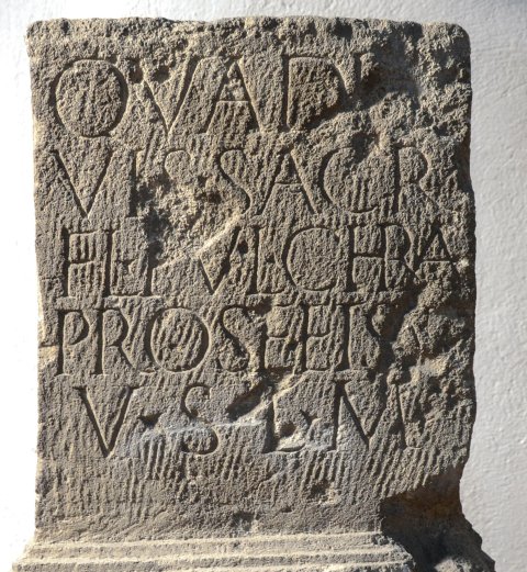 - Quadrivi(i)s sacr(um) / Fl(avia) Pulchra / pro se et suis / v(otum) s(olvit) l(ibens) m(erito)