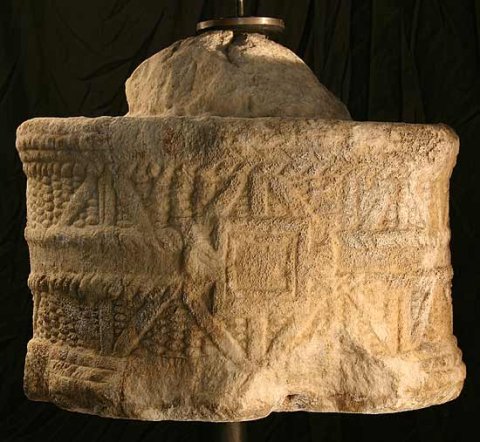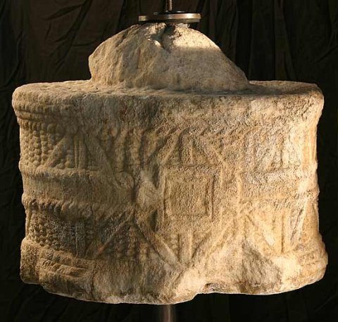- Runde geflochtene Ciste. Oben Rest eines Pinienzapfens ?