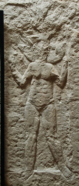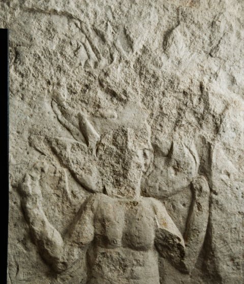 - Linke Seitenwange. Mythos: nackter Hercules schultert den erymanthischen Eber.