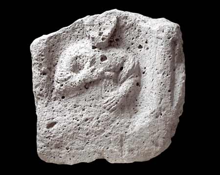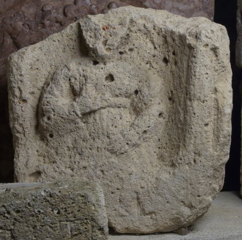 - Einheimische Frau: zwischen Säulen Halbfigur in Ärmelgewand mit Gürtel, Umhang, Fibel, Armreif.