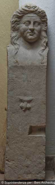 - Herme mit Kopf eines jugendlichen Gottes (Apollo ? Dionysos ?) mit langen Locken und Binde um die Stirn