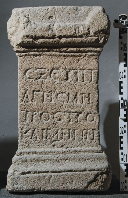 - griechisch: ἐξ ἐπιτ/αγῆς Μη/τρὸς Τρο/κλιμήνη/ς