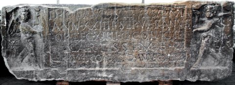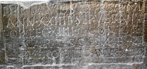 - D(is) M(anibus) / Claudiae Ursae / ann(orum) XXIIII Sep(timius) Veranus / op(tio) leg(ionis) XIIII G(eminae) co(n)iugi / carissim(a)e et / Sep(timio) Vero filio ann(orum) X dierum // VII // f(aciendum) c(uravit)