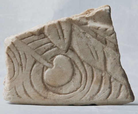 - Fragment einer Verkleidungsplatte mit vegetabilem Dekor (Blätter, Frucht);