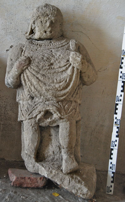 - zerbrochen, rechter Fuß u. Teil des Basisplatte abgebr., Phallus fehlt (war eingesetzt)