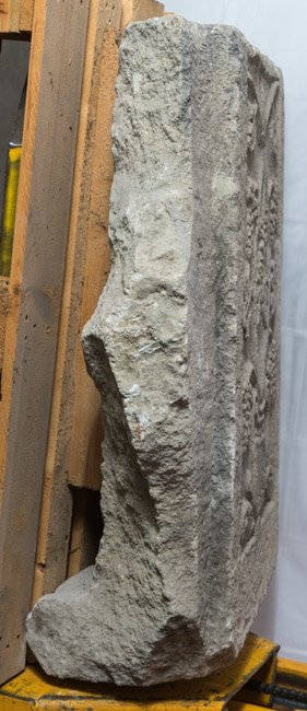 - Krater mit Weinranken. Rechtes Seitenfeld einer Grabinschrift ? Sarkophagfront ?