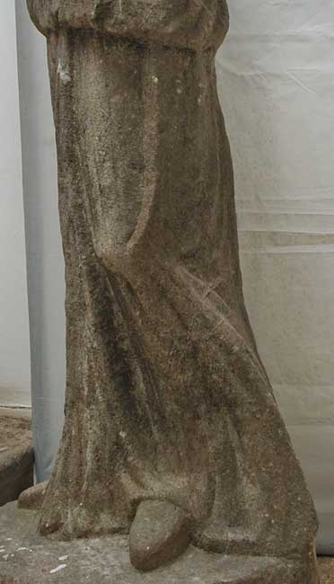 - stehende Frau in hoch gegürtetem Chiton mit Überschlag