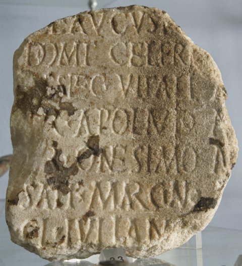 - ---] / Cl(audio) Augusto [---] / Dom(i)t(io) Celeri [---] / Respec() Vitali A[---] / [A]ur(elio) Apolau(s)to M[---] / [Au]r(elio) Onesimo A[---] / Satt(io?) Marciano I[---] / Cl(audio) Iuliano [---