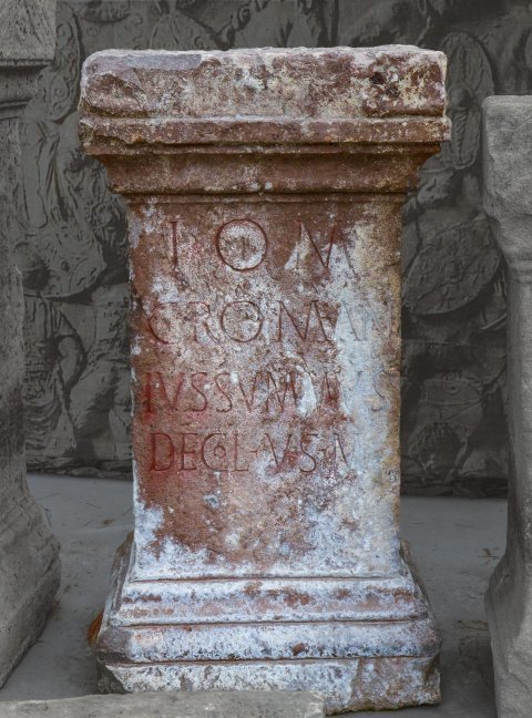 - I(ovi) O(ptimo) M(aximo) / C(aius) Roman/ius Summus / de(curio) col(oniae) v(otum) s(olvit) m(erito)