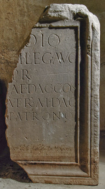 - [P(ublio) Orfi]dio / [Senecion]i leg(ato) Aug(usti) / [pr(o)] pr(aetore) / [provinc]iae Dac(iae) co(n)s(uli) / [col(onia) Ulpi]a Trai(ana) Dac(ica) / [Sarmiz(egetusa)] patrono